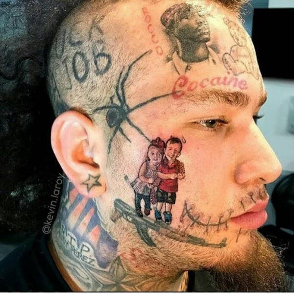 Większość ludzi decyduje się na na małe tatuaże lub większe w mniej widocznych częściach ciała. Niektórzy jednak nie mają już miejsca i eksponują je na chociażby na twarzy.