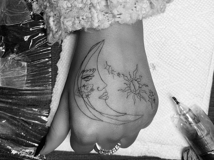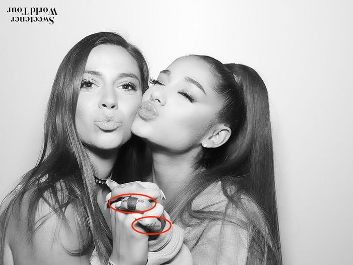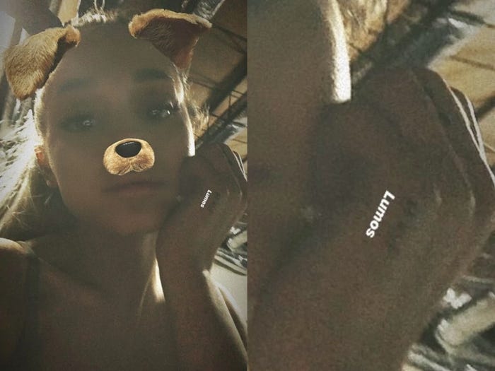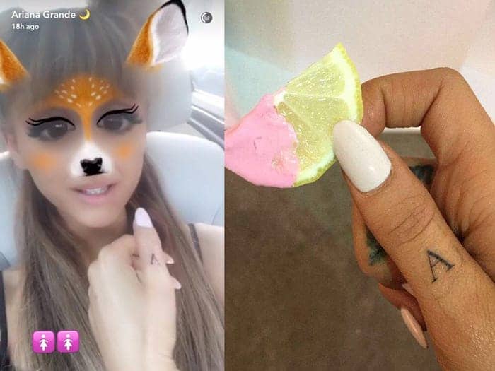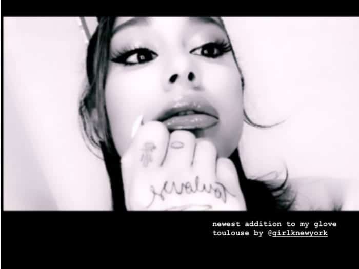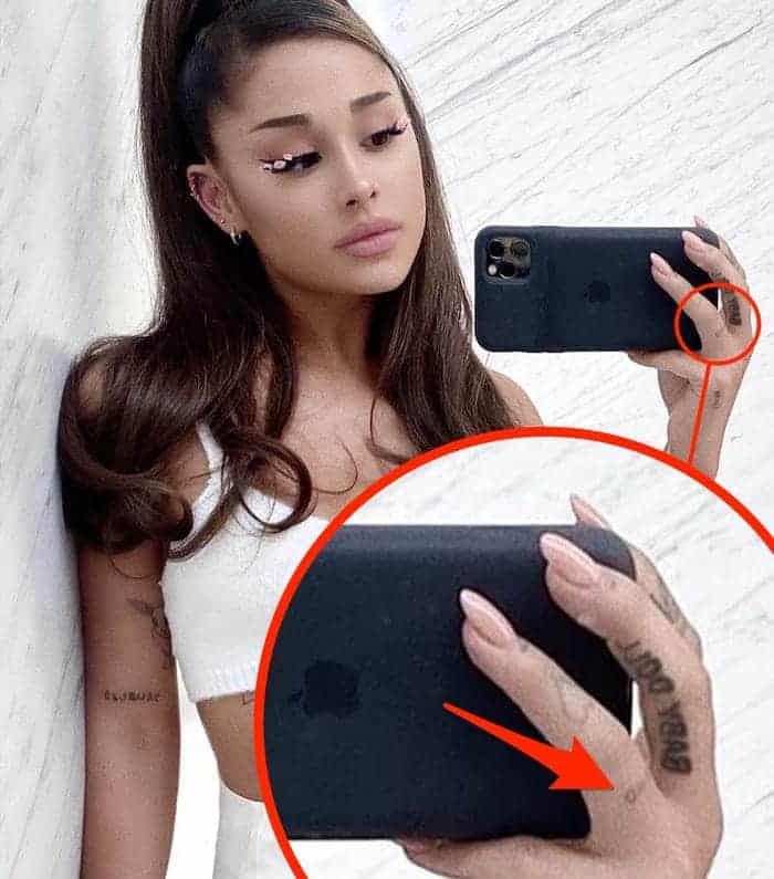 Ariana ma również tatuaże po wewnętrznej stronie dłoni. Została sfotografowana podczas spaceru z psem w czerwcu 2020 roku. Opublikowała zdjęcie swojej lewej dłoni kilka dni później.